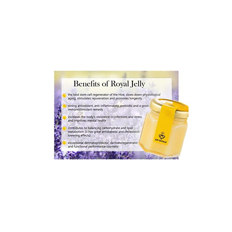 - Great Investment in Wellness: The API ROYALE royal jelly nutritional supplements are a premium and pure product that encapsulates the best of what nature has to offer. Rich in traces of protein, vitamins, minerals, amino acids, and fatty acids, this miraculous ingredient is a dream come true for those who want to take better care of their wellbeing.