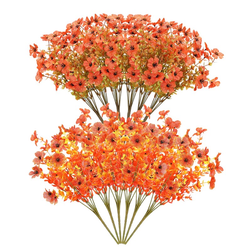 - Great Value Set: Each pack includes 12 fall flowers for outdoors, with each bouquet featuring 7 lush leafy branches. Stems can be freely detached and adjusted for versatile styling. Made of plastic and silk fabric, UV-resistant and all-weather-proof. Perfect for effortlessly filling porch planters or window boxes to meet personalized décor needs.