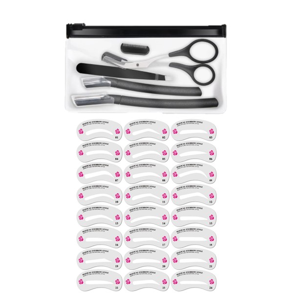 - Templates in Various Shapes: A set of 24 types includes a template that is compatible with parallel eyebrows (10 types of sets are different, so please be sure to check out the contents of this set are different)