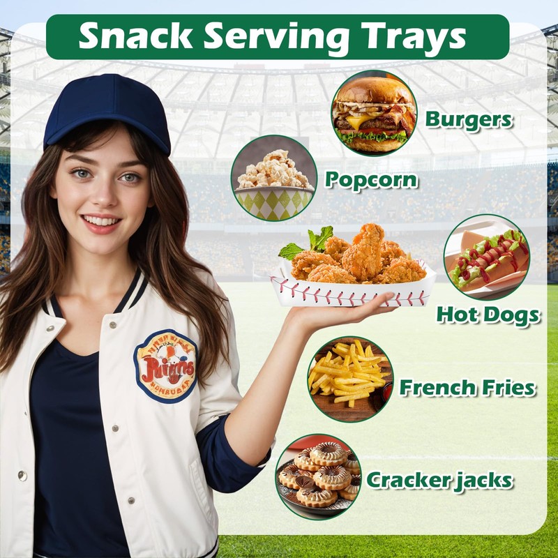 --Ideal for serving nachos, hot dogs, popcorn, and more, these trays are perfect for baseball-themed parties and gatherings.