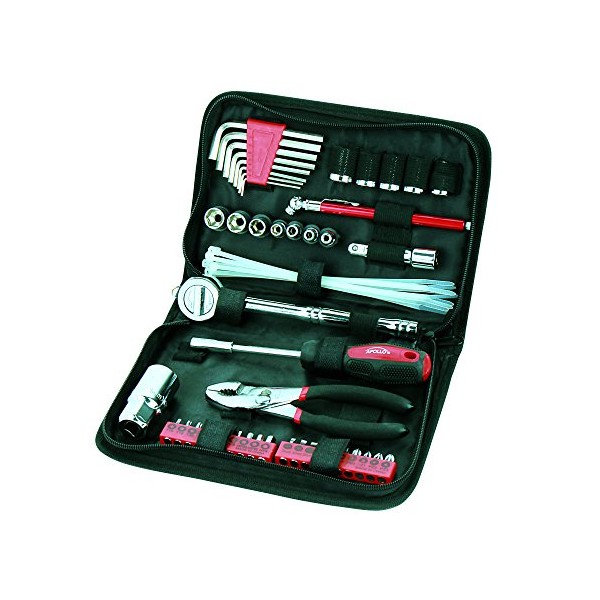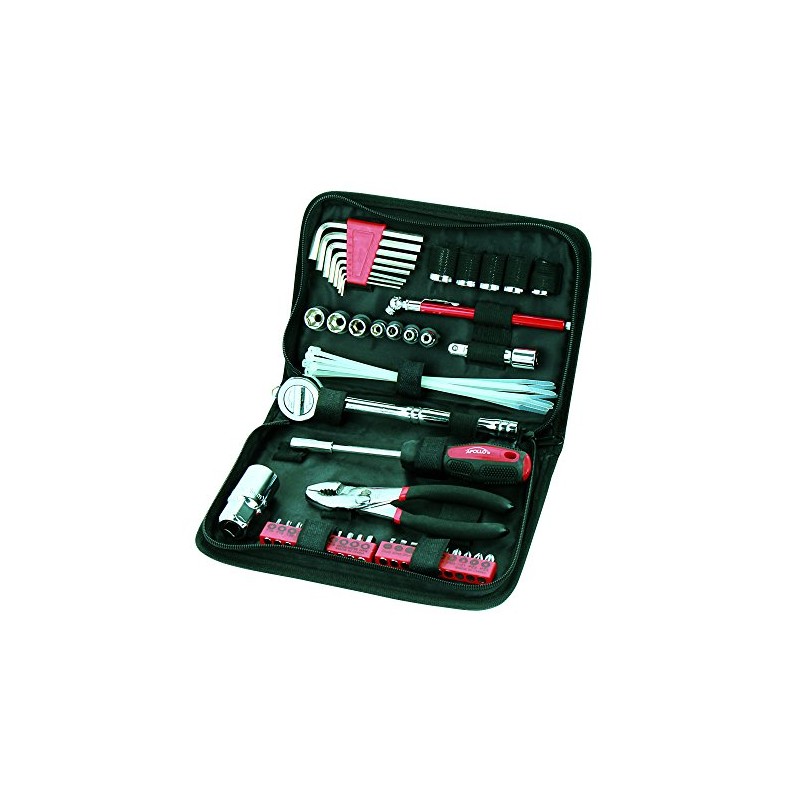 - HANDY AUTO TOOL KIT: Small, compact, fits anywhere, but contains the essential tools for your vehicles’ emergency repair, including most used 1/4” and 3/8” sockets, hex keys, tire gauge, slip joint pliers, cable ties and a bit driver with its 20 most useful bits.