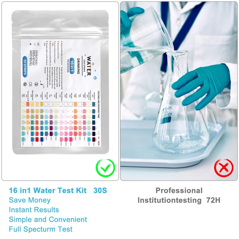 - Versatile: Our 16-in-1 water quality test strips are ideal for testing drinking water, tap water, well water and aquarium water. They are perfect for daily use well water yourself testing at home or for taking with you on the go.