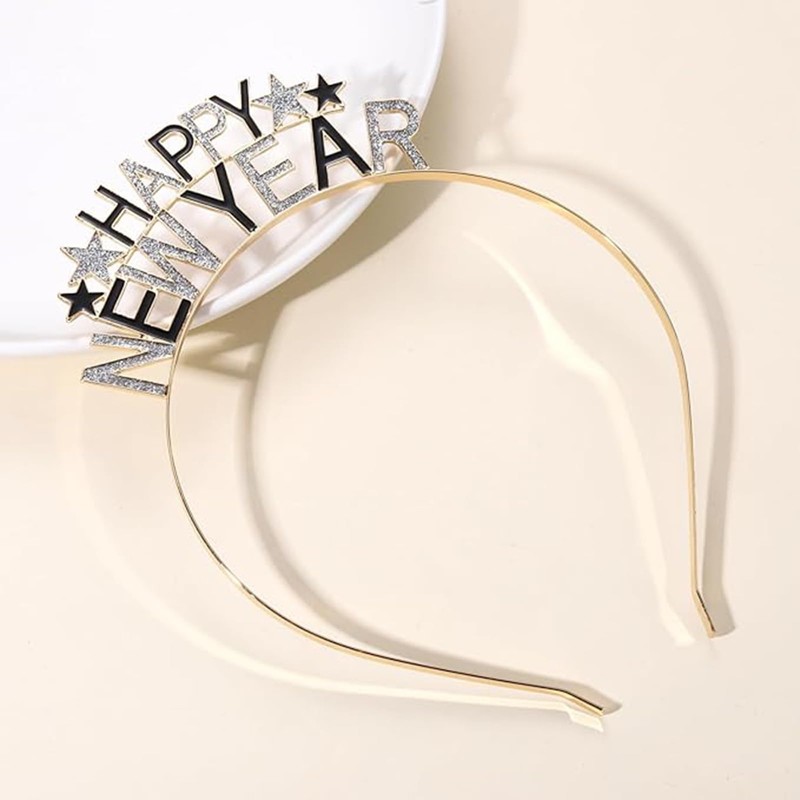 Apone Fatu Girls Women Happy New Year Headband Tiara Eve Sparkly Rhinestone Headbands Merry Christmas (Gold B, One Size)