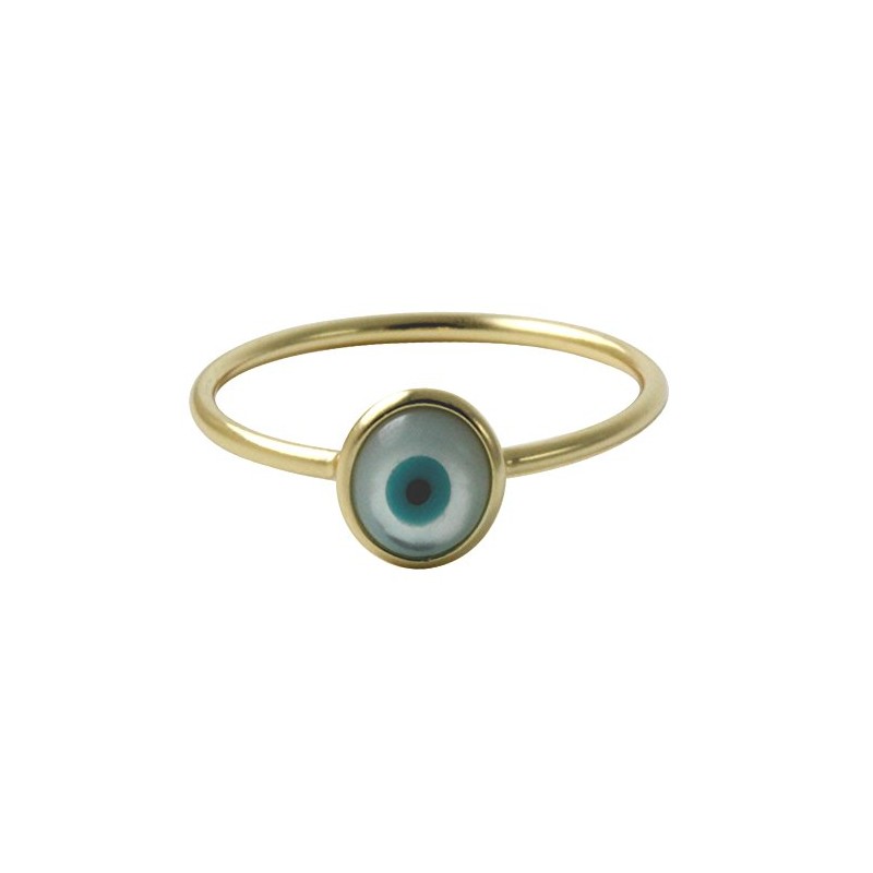 apop nyc Goldtone Sterling Silver Blue Evil Eye Thin Ring Stacking Size 6