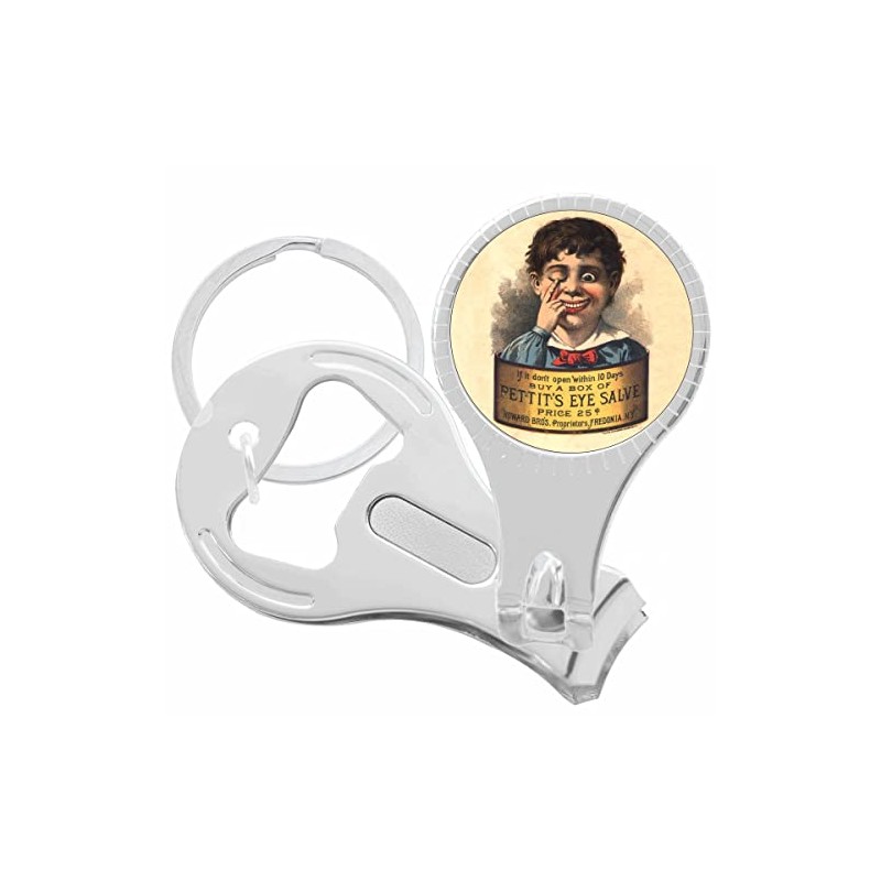 Apothecary Eye Salve Vintage Nail Clippers Plus Bottle Opener Keychain