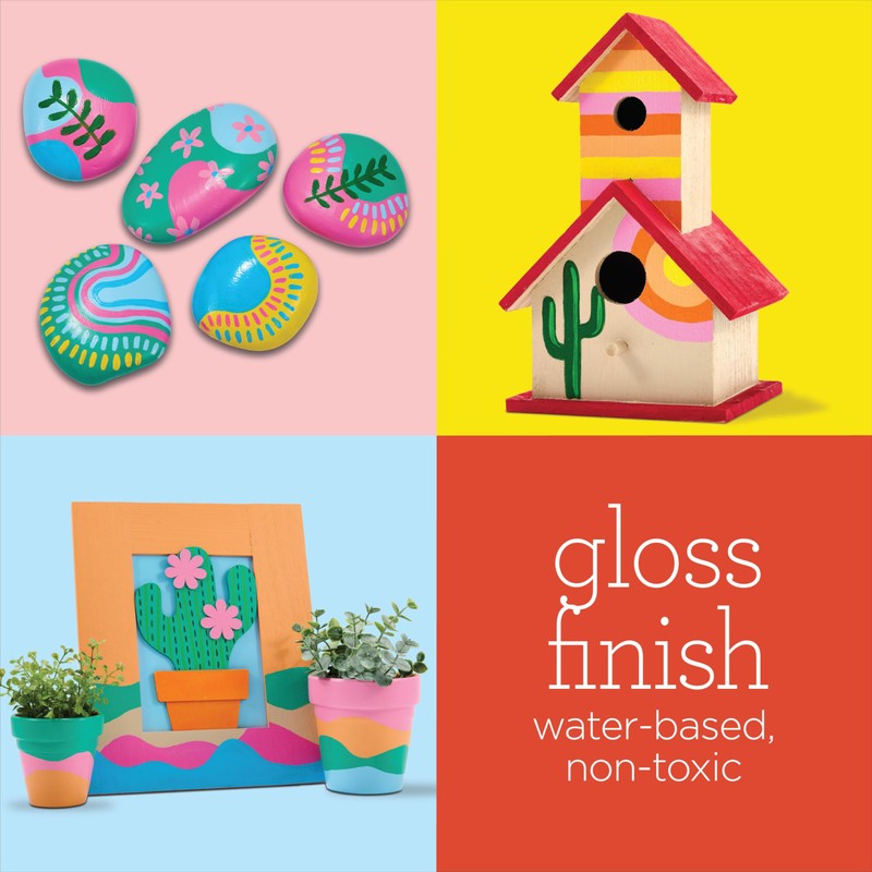 • BRILLIANT COVERAGE - Use this gloss acrylic paint set on a variety of surfaces, including wood, paper, canvas, Styrofoam, paper mache, and so much more.
