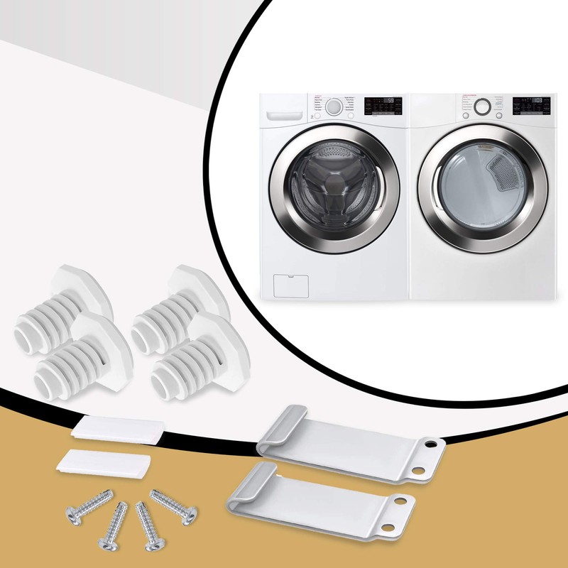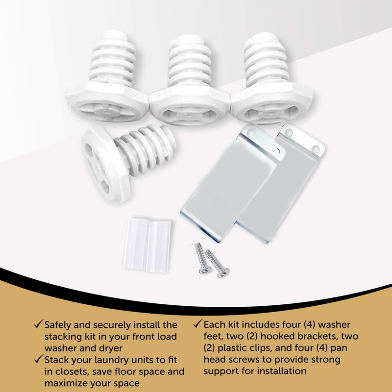- COMPLETE SET - Each washer dryer stacked unit includes four (4) washer feet, two (2) hooked brackets, two (2) plastic clips, and four (4) pan head screws to provide strong support for installation.