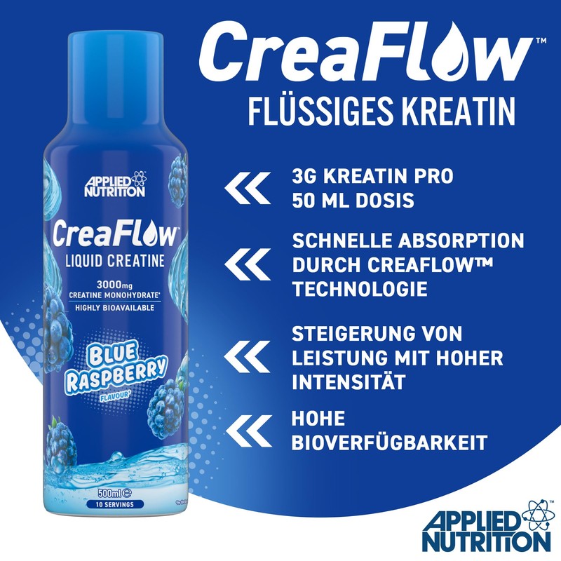 Applied Nutrition CreaFlow™ Creatine Monohydrate Liquid 3000 mg per Dose - Pre-Mixed Preparation for Fast Absorption & Performance - 500 ml (10 Servings) (500 ml, Blue Raspberry)