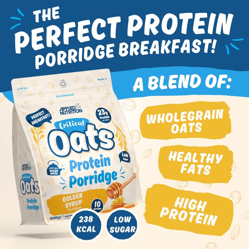 Applied Nutrition Critical Oats Advanced Protein Porridge - Whey Protein Powder Blend with Wholegrain Oats & ISO-XP Protein Isolate, Amino Acids, Easy Mix (600g - 10 Servings) (Golden Syrup)