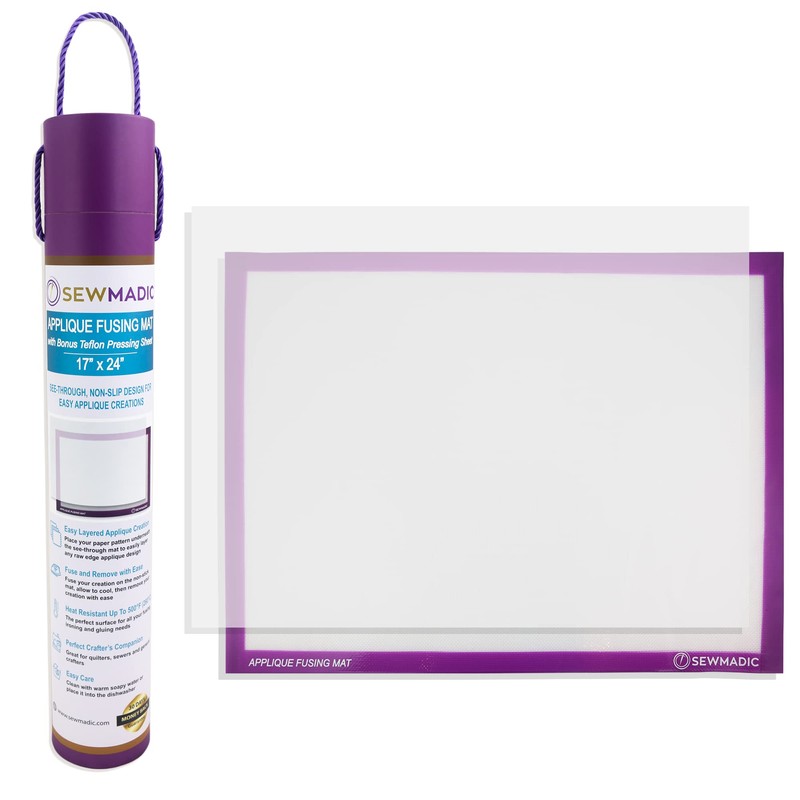 Applique Fusing Mat 17"x24" (43cm x 61cm) with Bonus Applique Pressing Sheet and Handy Storage Tube - A Great Silicone Mat and Applique Teflon Sheet for Arts and Fusible Web Fabric Crafts