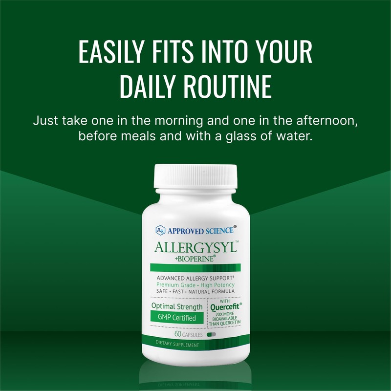 Approved Science Allergysyl aims to rapidly ease the symptoms of seasonal allergies. Butterbur and Nettle Leaf help lower and block histamine receptors with. The Approved Science Allergysyl formula helps to boost and protect the immune system with Vitamins A, C, and D. Ease the intensity and discomfort associated with seasonal allergies.