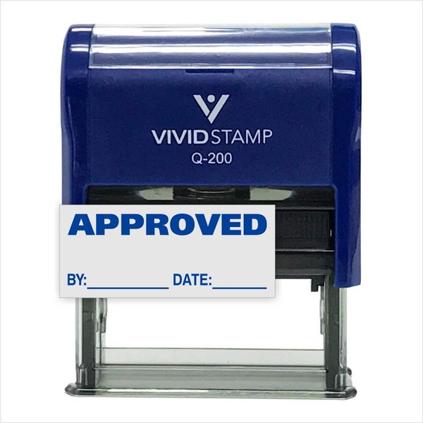 Approved w/by Date Line Self-Inking Office Rubber Stamp (Blue) - Medium