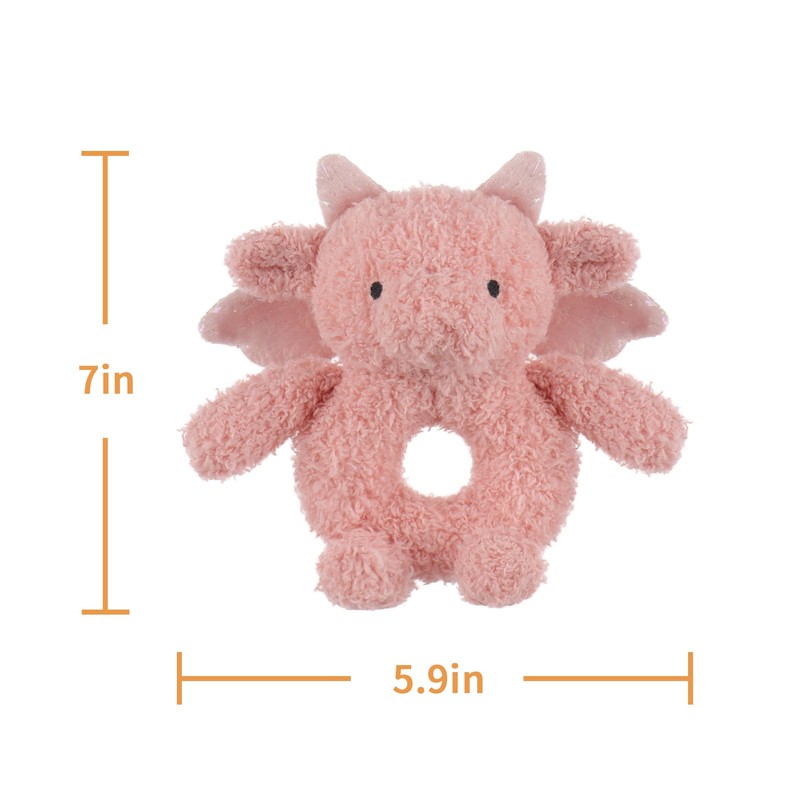 - Perfect Size : The cute dragon baby lovey animal shape ring rattles is 15cm. Soft Plush Hand Rattle designed with a Perfect Sizes is available for newborn babies to grip using their little hands.