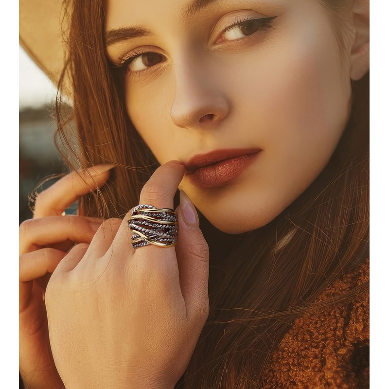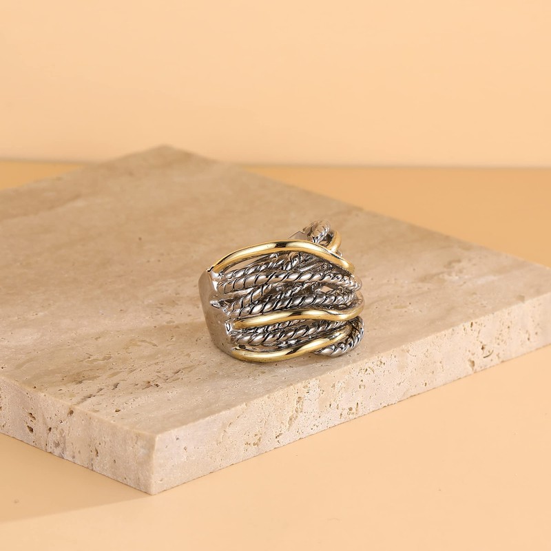 • 【DESIGN】Crossover, two-tone gold and antique design makes sure our ring never out of fashion, Inter Unisex fashion for womens and men.