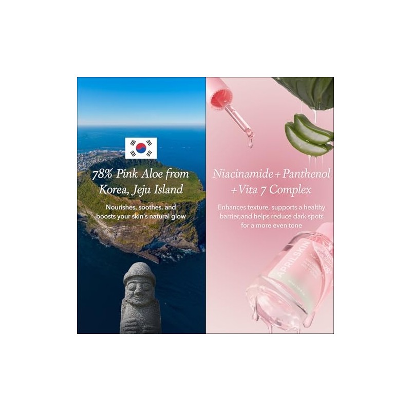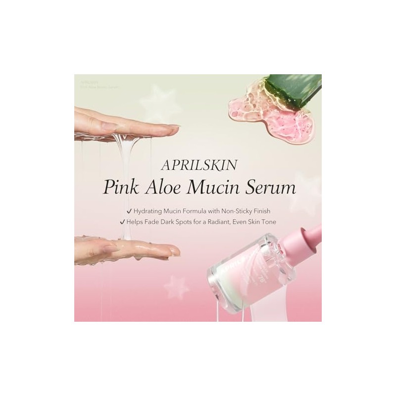 APRILSKIN Pink Aloe Mucin Serum 1.01 fl.oz (30ml) Hydrating 78% Jeju Aloe Mucin Formula with Non-Sticky Finish for a Glass Glow Look, Korean Skincare