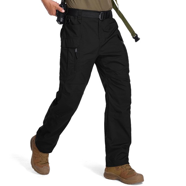 Aptint Men's Cargo Pants Ripstop Water Resistant Tactical Pants Lightweight Stretch Hiking Work Pants Outdoor Gear(9229,Black,36)