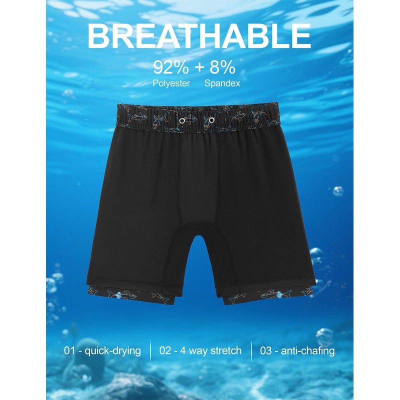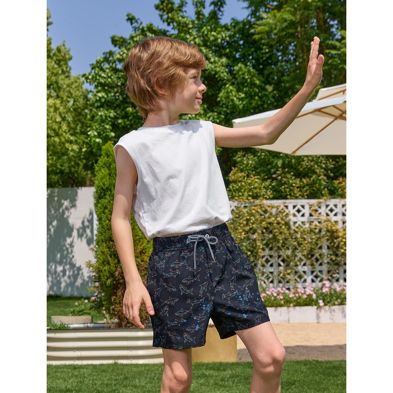 - Breathable Elastic Fabric - These boys swim trunks are made of 92% Polyester and 8% Elastane fiber, providing four-way stretch, allowing for free movement whether swimming, surfing, or playing on the beach. Lightweight and fast drying fabrics keep children comfortable throughout the day.