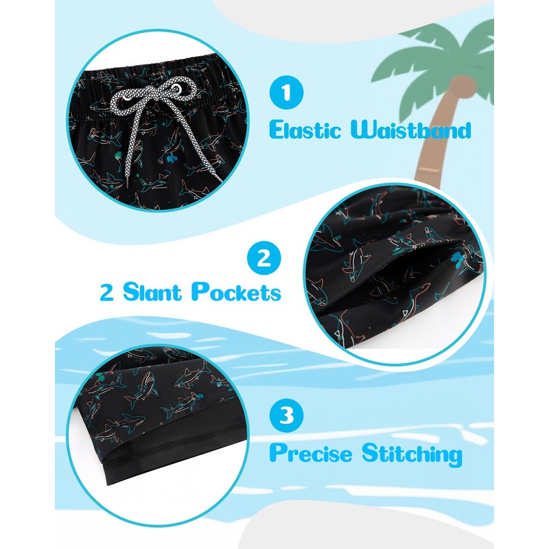 - Functional and Stylish Design - with two side pockets for storing small items. Our boys' swim shorts remain bright even after repeated use. The soft lining prevents friction and sand irritation, making it perfect for all day wear.