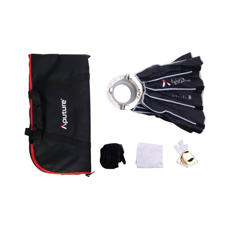 • Aputure Light Dome Mini III 2' Bowens Mount Softbox - 1.5-Stop Diffusion Cloth - Gold/Silver Inner Baffle Diffusion - 40 Degree Fabric Light Control Grid - Carrying Bag - Aputure 1 Year Limited Warranty