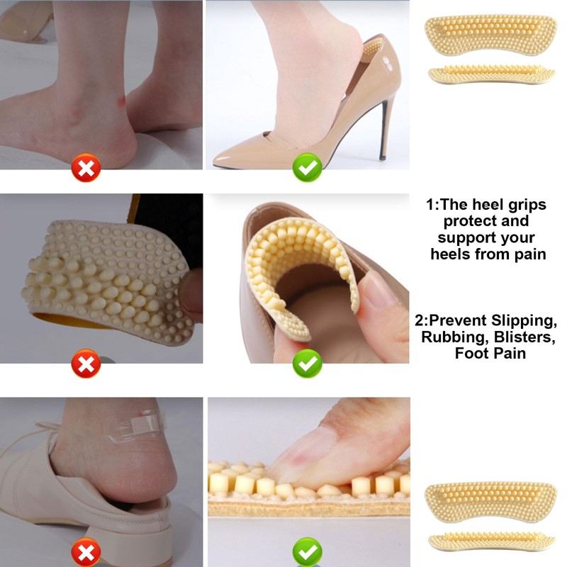 - Heel Pain Relief: The heel grips protect and support your heels from pain.Prevent Slipping, Rubbing, Blisters, Foot Pain, and help keep your heel in place in your shoe.