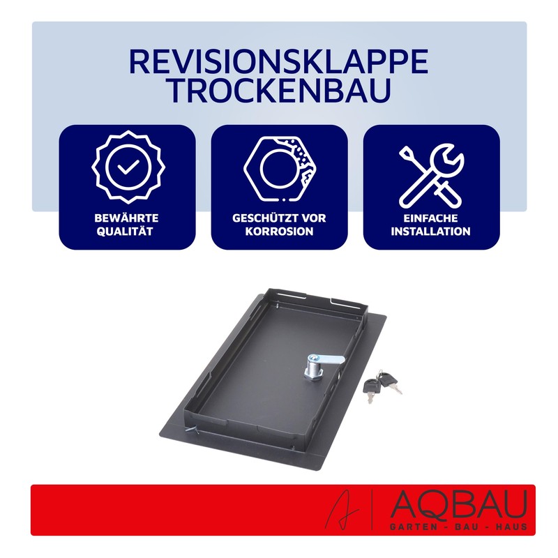 Aqbau® Inspection Flap Drywall 20 x 40 cm Black, Inspection Door with Lock, Inspection Maintenance Door, Service Hatch, Maintenance Hatch Drywall Made of Metal