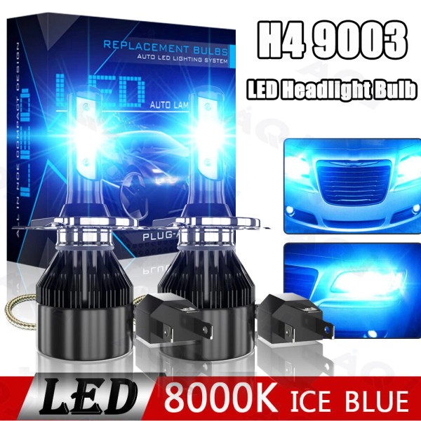 AQJ H4 9003 Ice Blue LED Headlight Bulb Conversion Kit High Low Beam 8000K 2500LM