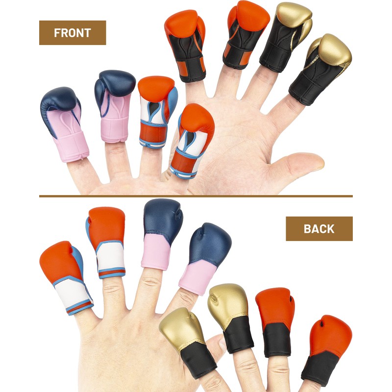 - Finger toy set package 2 pair of gold mini boxing gloves. Finger puppet size is suitable for children and adults.