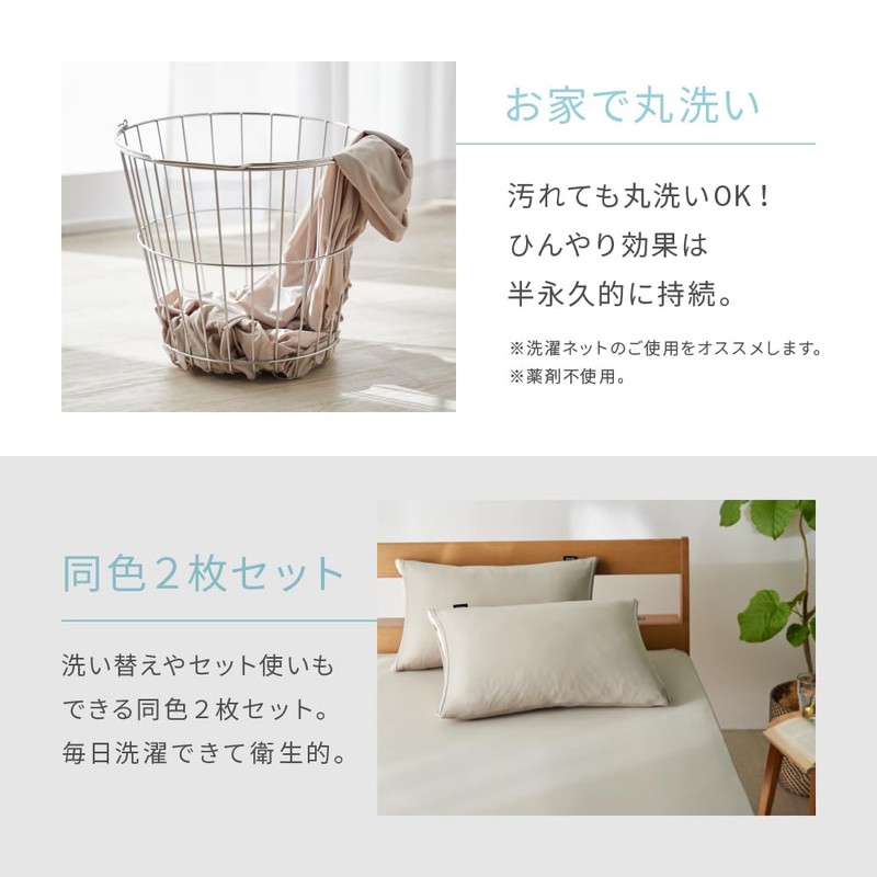 - Specifications: Contact cooling value (Q-MAX) 0.53 / Double-sided opening / Non-zipper / Compatible with pillows with 16.9 x 24.8 inches (43 x 63 cm) / Care instructions: Machine washable (use a laundry net)