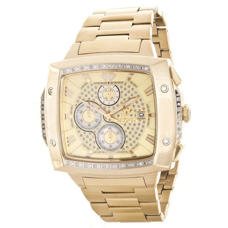 Aqua Master Men's Gold Tone Steel Champagne Dial Diamond Chronograph Watch W#354
