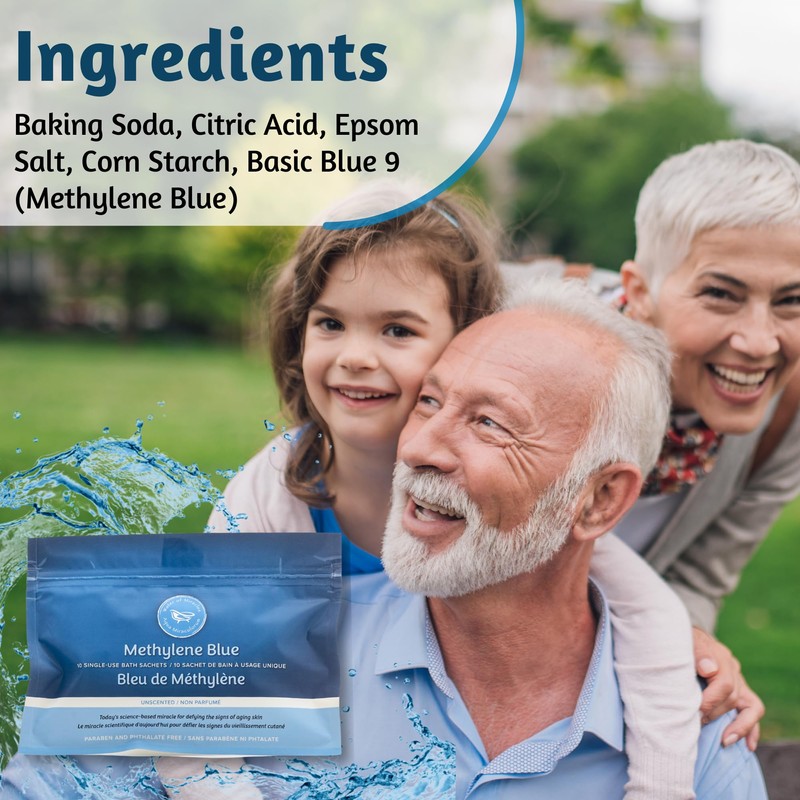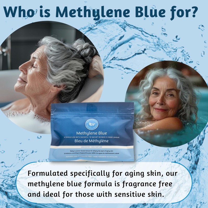 Methylene Blue Bath Soak | Age Defying Serum for Aging and Fragile Skin | Supplement for Defying The Signs of Aging Fragile Skin | USP Pharmaceutical Grade | 10 Dissolvable Sachets
