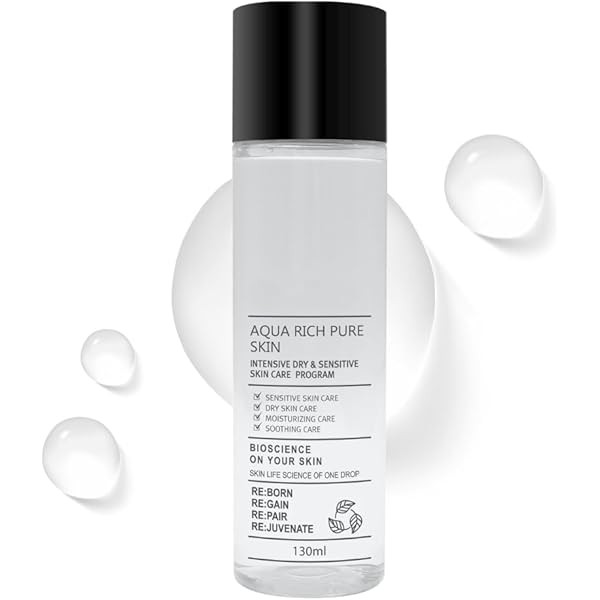 Aqua Rich Deep Hydration Toner for Dry Skin | Natto Gum, Hyaluronic Acid, CICA Extract | Korean Skin Care Moisturizing Toner for face (4.4 fl.oz 130ml)