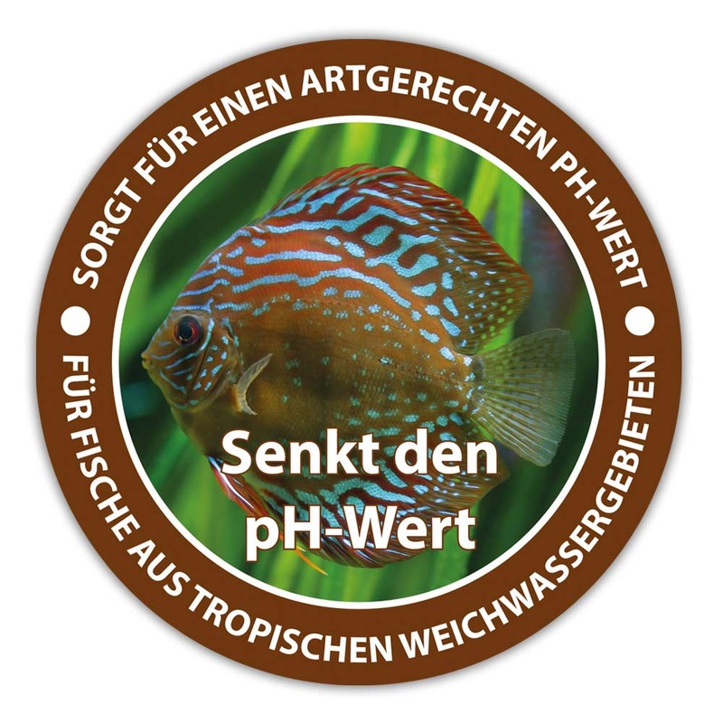 Creates optimal conditions for fish from tropical soft water areas. It ensures a species-appropriate pH value, so that the fish feel visibly comfortable. The existing tannic and humic acids additionally act against the fungation of a possibly existing frames. The colour splendour of the fish is increased.