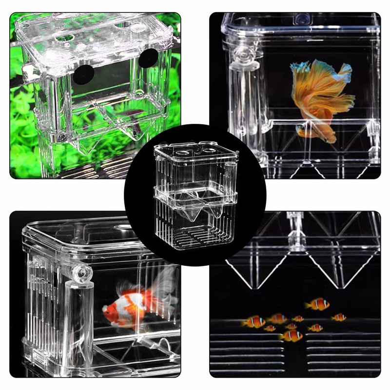 - Wide range of applications: this fish breeding box is ideal for live viviparous fish such as mollies, guppies or other tropical fish. Ideal as an isolation box for newborn fish, pregnant female fish, fish eggs, injured fish, aggressive fish, shrimp, etc.
