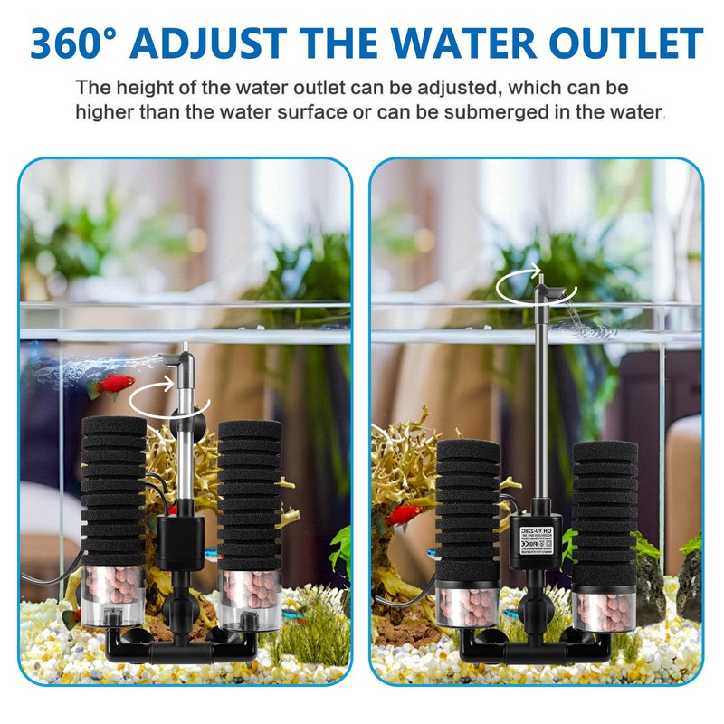 - Praktisches design: Der Aquarium Schwammfilter bietet einen um 360° drehbaren wasserablauf. Die Aquarium Schwammfilter lässt sich anpassen, leise schaumfilte verschiedene anforderungen zu erfüllen