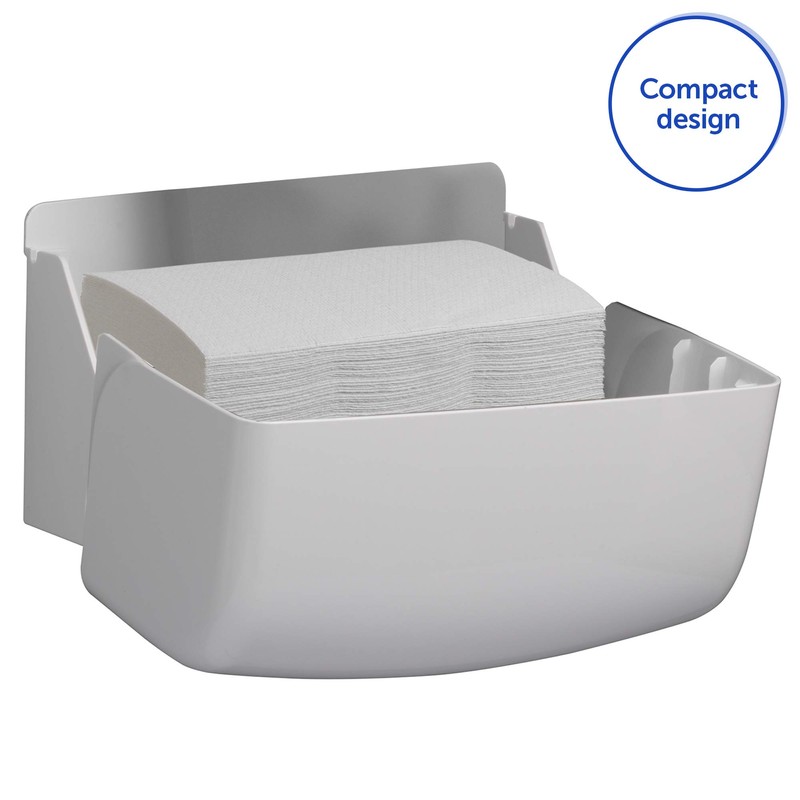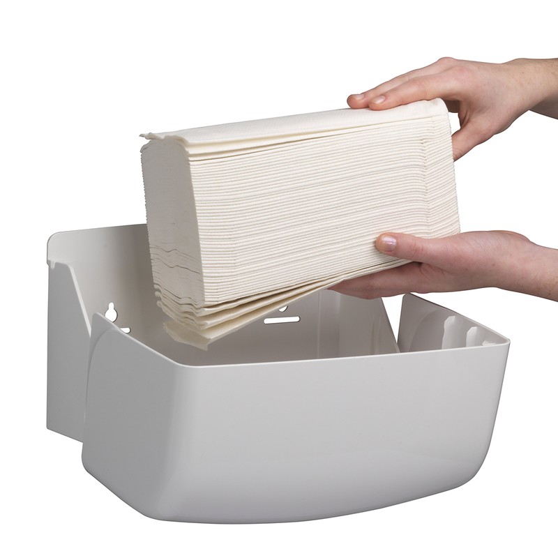 - The sleek, smooth, rounded design of this folding towel dispenser is free of dirt traps, allowing for easy cleaning and improved washroom hygiene