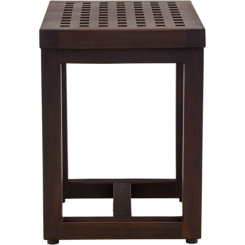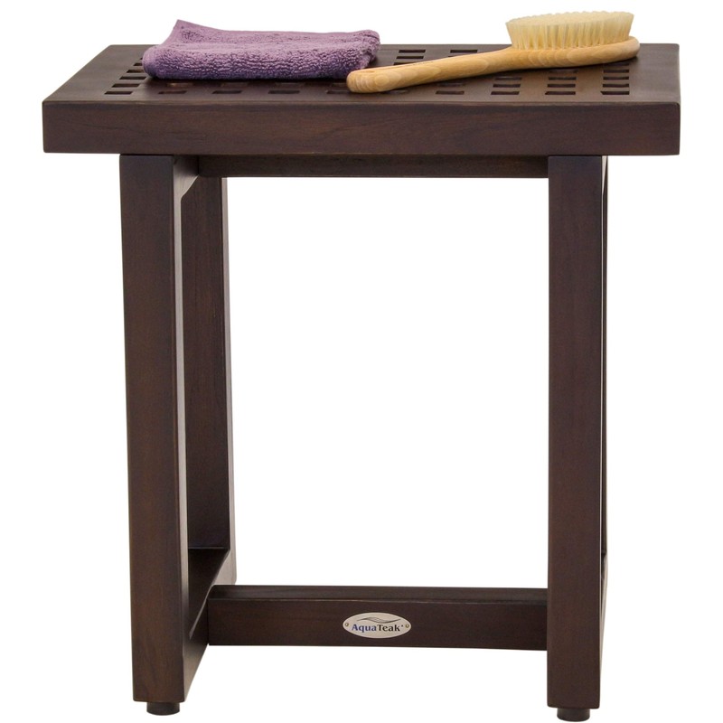 Product Dimensions: 18" x 12" x 18" Product Weight: 12 LBS AquaTeak’s shower bench, finished in deep rich mocha coloring, is a unique accent for any room of your home. This grate style teak shower seat is perfect for your shower or anywhere in your bathroom. The handcrafted solid teak shower stool will add a natural elegance to your home and is both durable and naturally water resistant. Ideal as a teak shower bench or an outdoor patio accent piece, the convenient design is highly versatile, and can be used almost anywhere. Your teak bath stool also comes with all stainless steel hardware and includes rubber padded feet for safety and stability in any location. Aqua Teak is the world's leader in teak furniture - carrying more than 100 teak shower benches, stools, accessories and storage options. (Some assembly required)