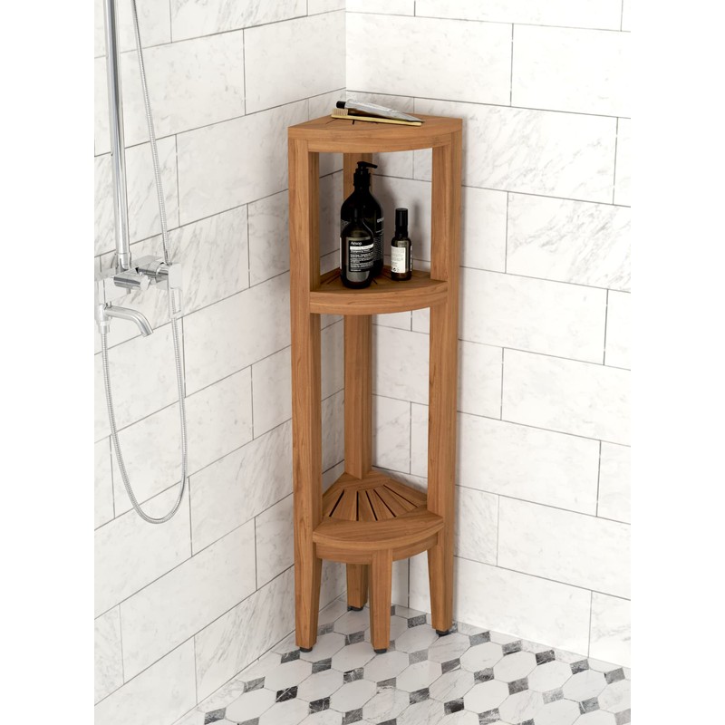 AquaTeak Kai Teak Corner Bath Shelf with Angled Shaving & Washing Foot Rest