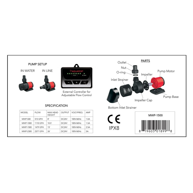 Aquatop 1,479 MaxFlow DC Water Pump w/Controller, MWP-1500