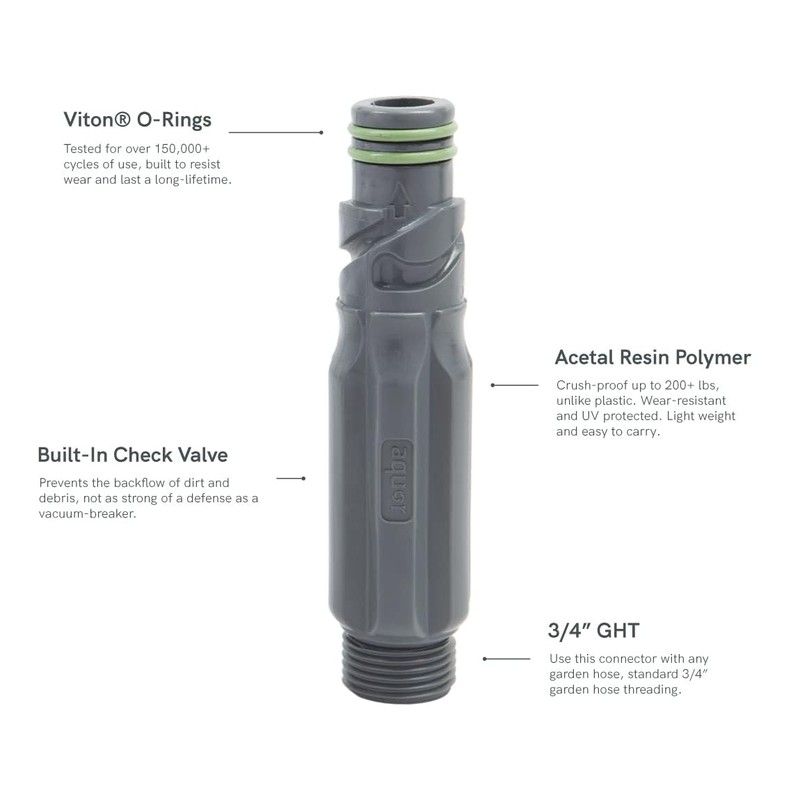 Aquor Aquor Straight Hose Connector, With Check Valve, Slate Gray