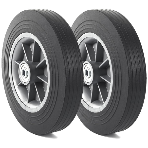 AR-PRO (2-Pack) 10'' x 2'' Flat Free Solid Rubber Tire and Wheel, 3/4" & 5/8"...