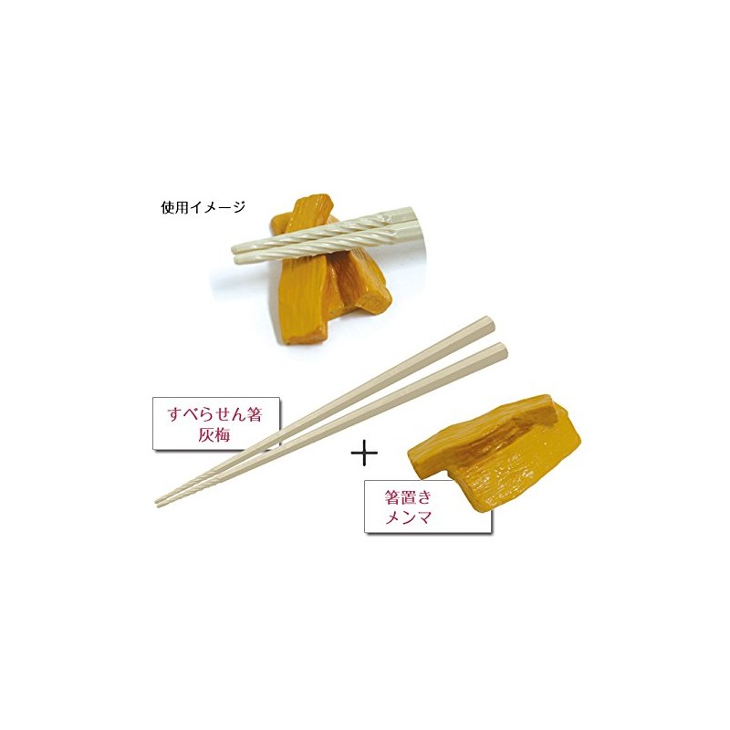アルタ すべらせん箸 (上) とラーメンの具の箸置きセット 灰梅 & メンマ AR0623237, サイズ:約w1 d1 h21cm