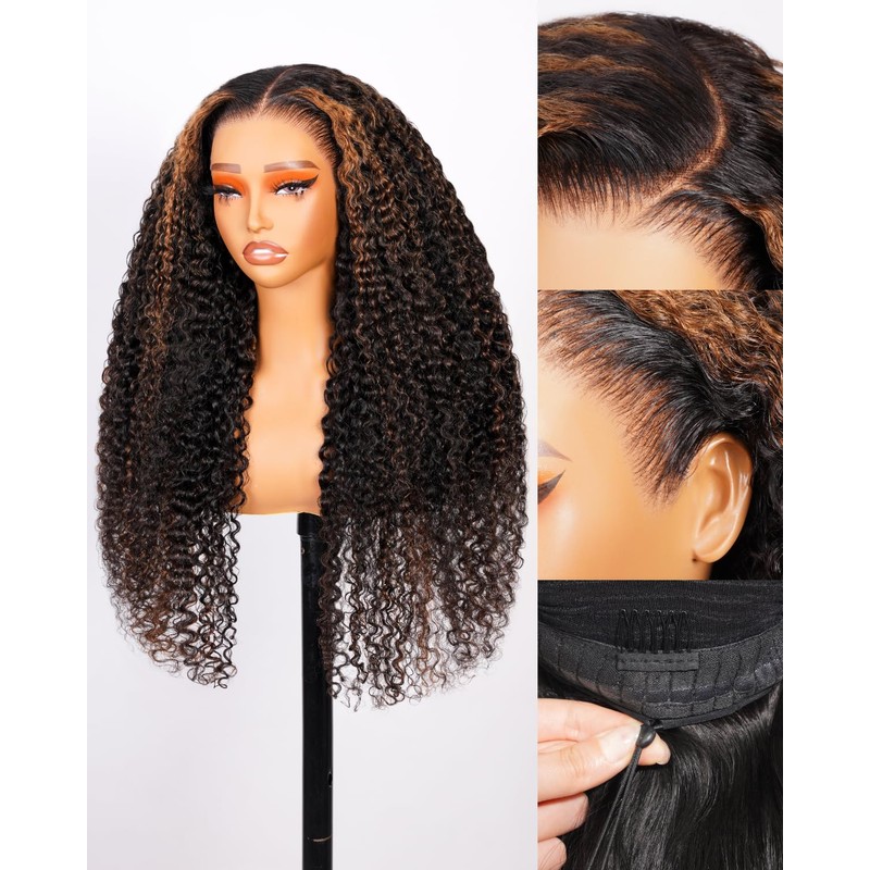 1.Type: honey blonde wig human hair Pre Cut Lace wig 13X6 Natural Color Curly Human Hair Wig Glueless Wigs Human Hair