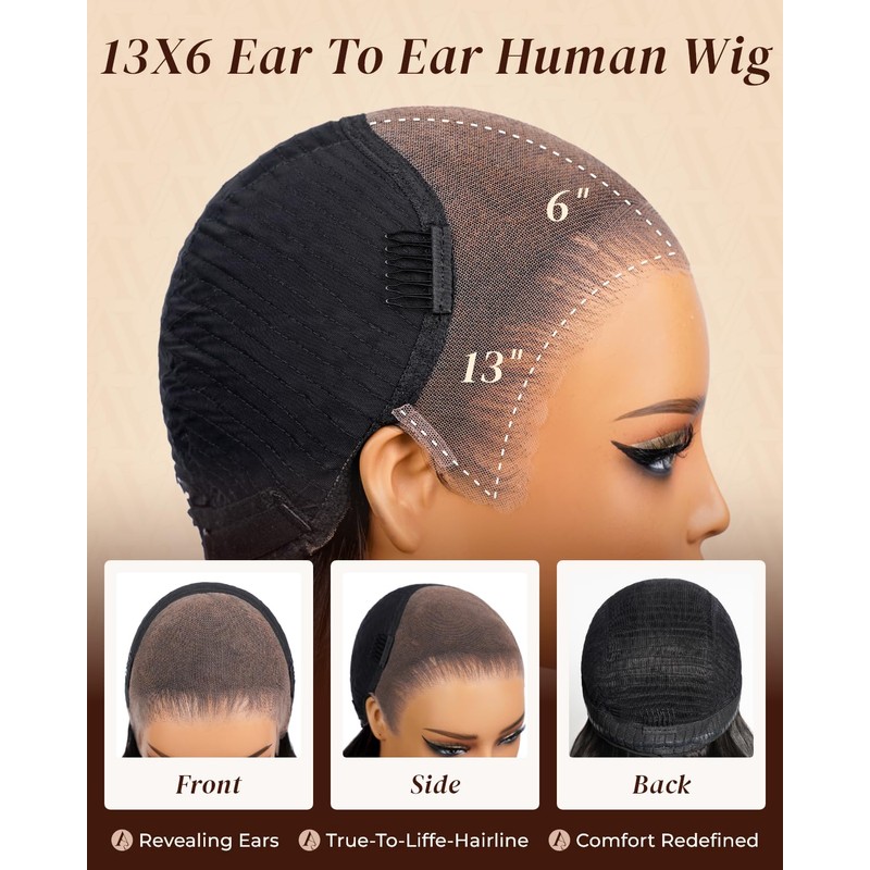 - 【13x6 Lace Front Wigs Human Hair】Easy Glueless Installation,13x6 lace front with adjustable straps & combs,secured fit without glue. Perfect for beginners & sensitive scalp.