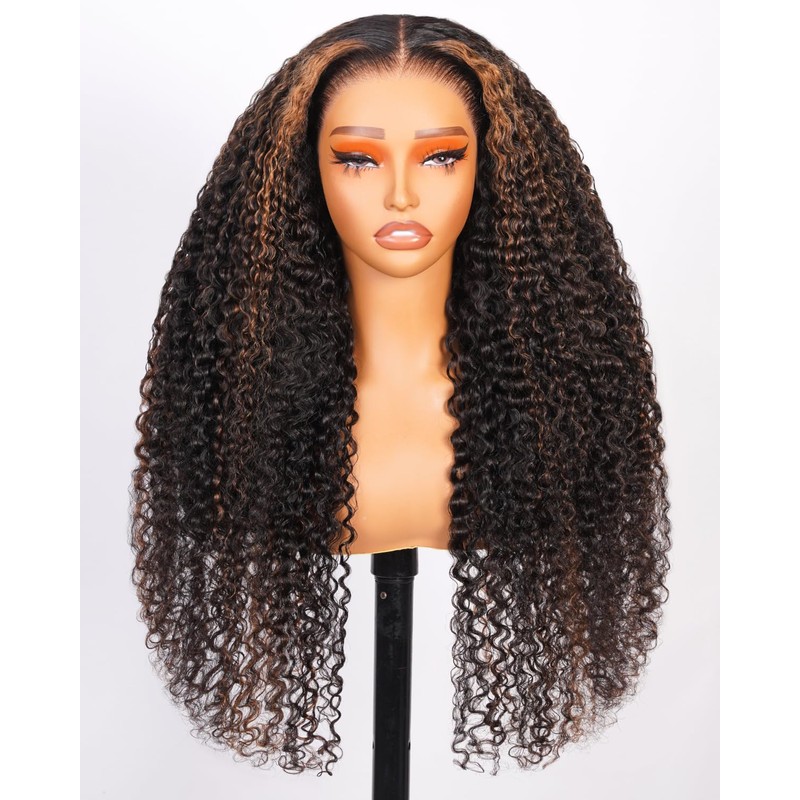 Arabella 13x6 Honey Blonde Ombre Lace Front Wigs Human Hair 220% Density FB/30 Highlight Deep Curly Human Hair 12A Salon-Quality Glueless Wigs Human Hair Pre Plucked Pre Cut 20INCH