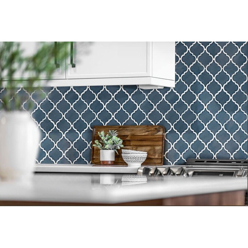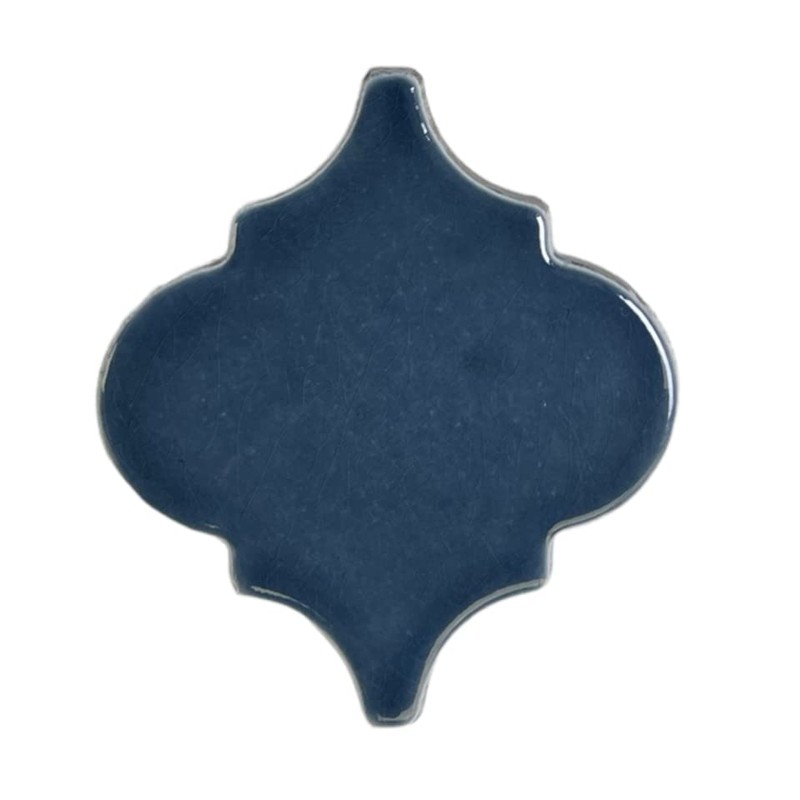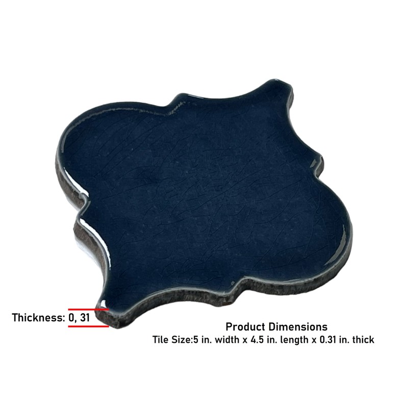 Arabesque Lantern 5 in. Glazed Single Porcelain Wall Tile, Kitchen Backsplash, Bathroom Wall Tile - Ornament Design (Navy Blue)