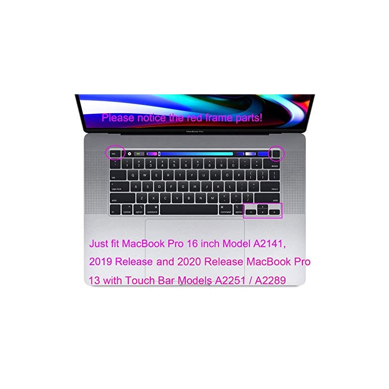 - Compatible models: MacBook Pro 16.1 inch with Retina Display and Touch Bar, 2019 Release, US Keyboard Layout, Models A2141 & MacBook Pro 13 inch with Retina Display and Touch Bar, 2020 Release, US Keyboard Layout, Models A2289 / A2251, 2022 2021 2020 MacBook Pro 13 inch with M2 / M1 Processor Chip model A2338. Do not fit other versions MacBooks