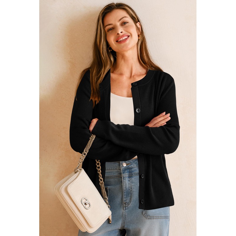 Arach&Cloz Womens 2025 Cropped Cardigan Fall Fashion Soft Long Sleeve Cashmere Business Casual Outfits Work Trendy Knit Shrugs Lightweight Crew Neck Trendy Sweaters Button Down Dressy Black M