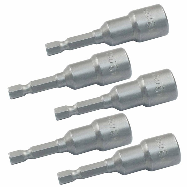 Aracombie 5Pcs Nut Driver Bit, 13mm Quick-Change Nut Setter Bit Set, 1/4 Hex Shank, Socket Adapter Hex Nut Driver Set, 65mm Length