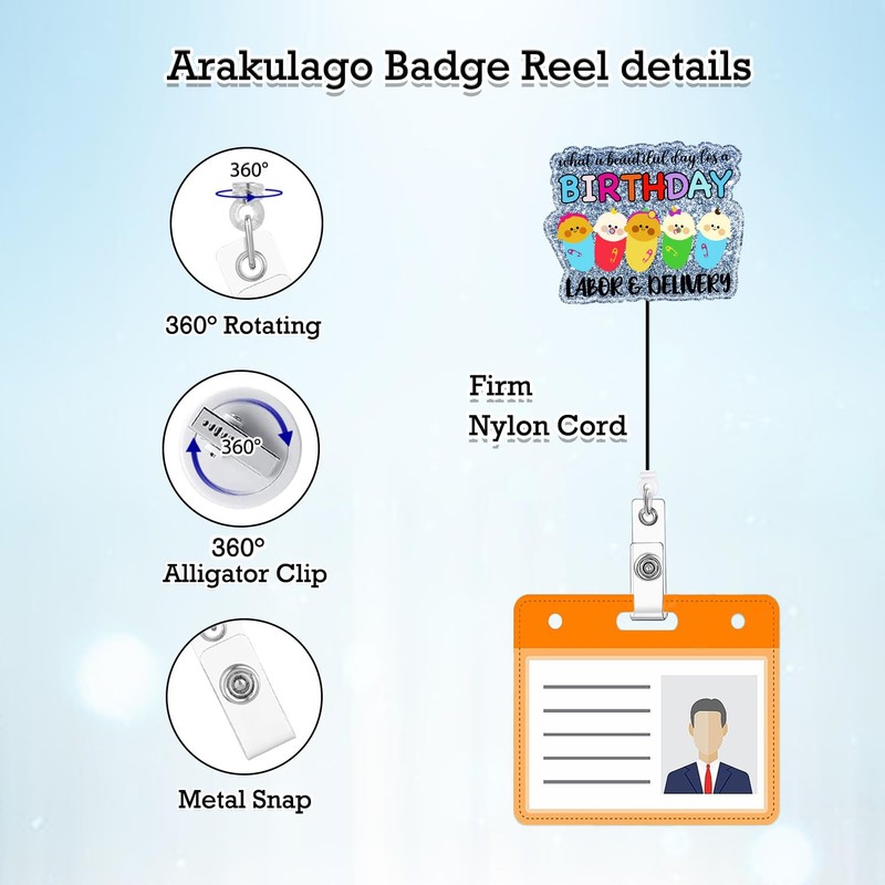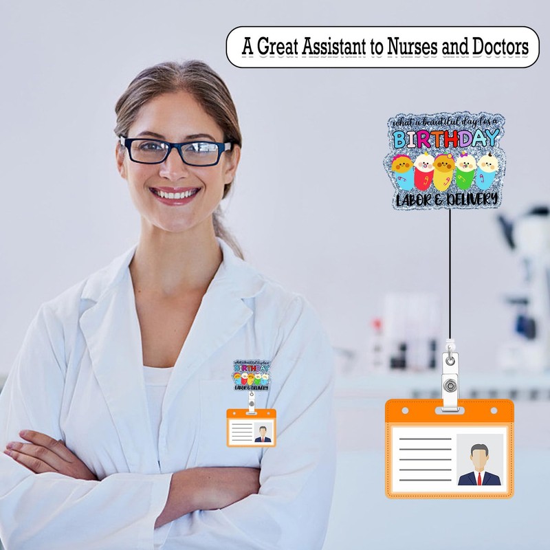 Arakulago What a Beautiful Day for a Birthday Labor & Delivery Badge Reel Retractable NICU L&D Funny Medical Assistant Nursing Badge Holder with ID Clip Accessories Acrylic Name Badge Clip CNA RN