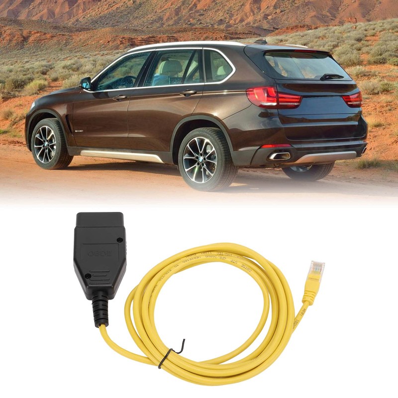Aramox Coding Cable Fit for F Series 3 Series 5 Series, Yellow ENET Coding Cable OBD2 Diagnostic Cable with CD Replacement